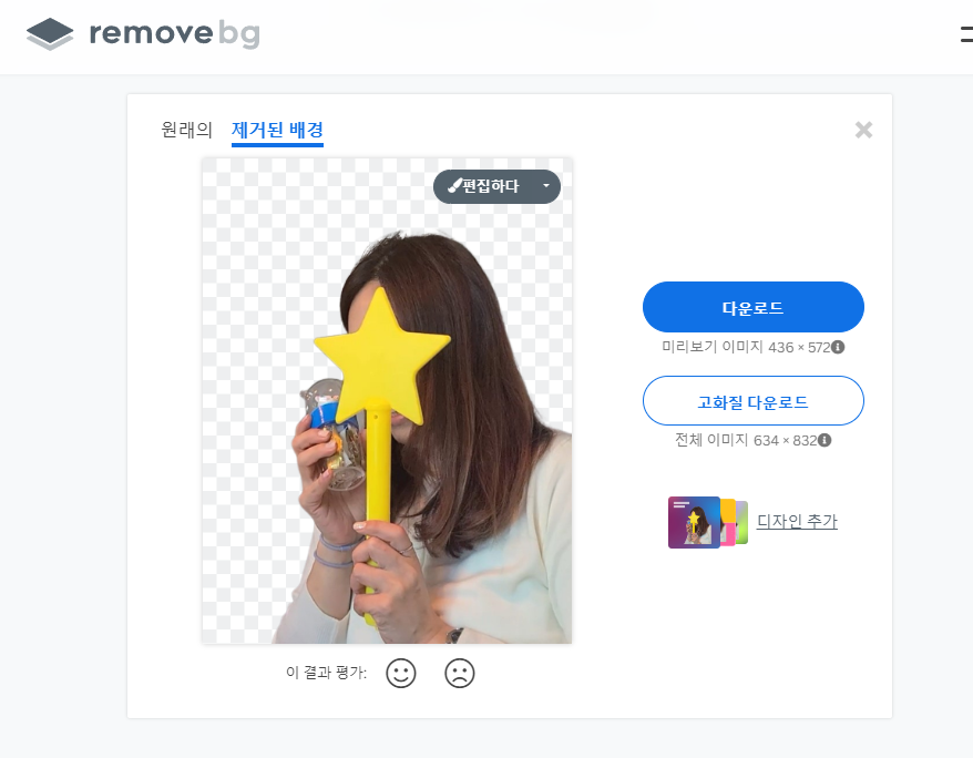 3. 파일을 선택하면 자동으로 배경제거가 사진에 적용